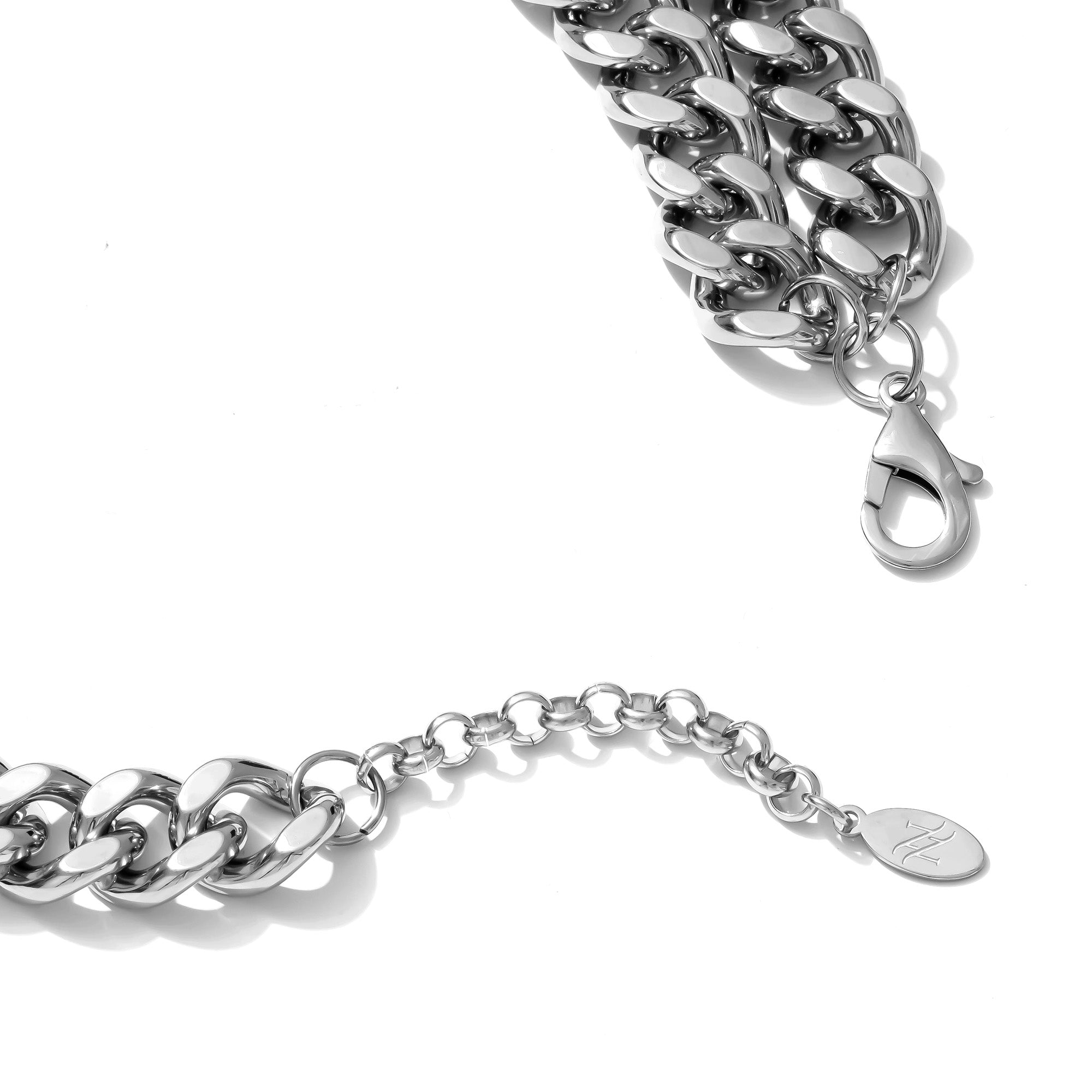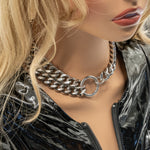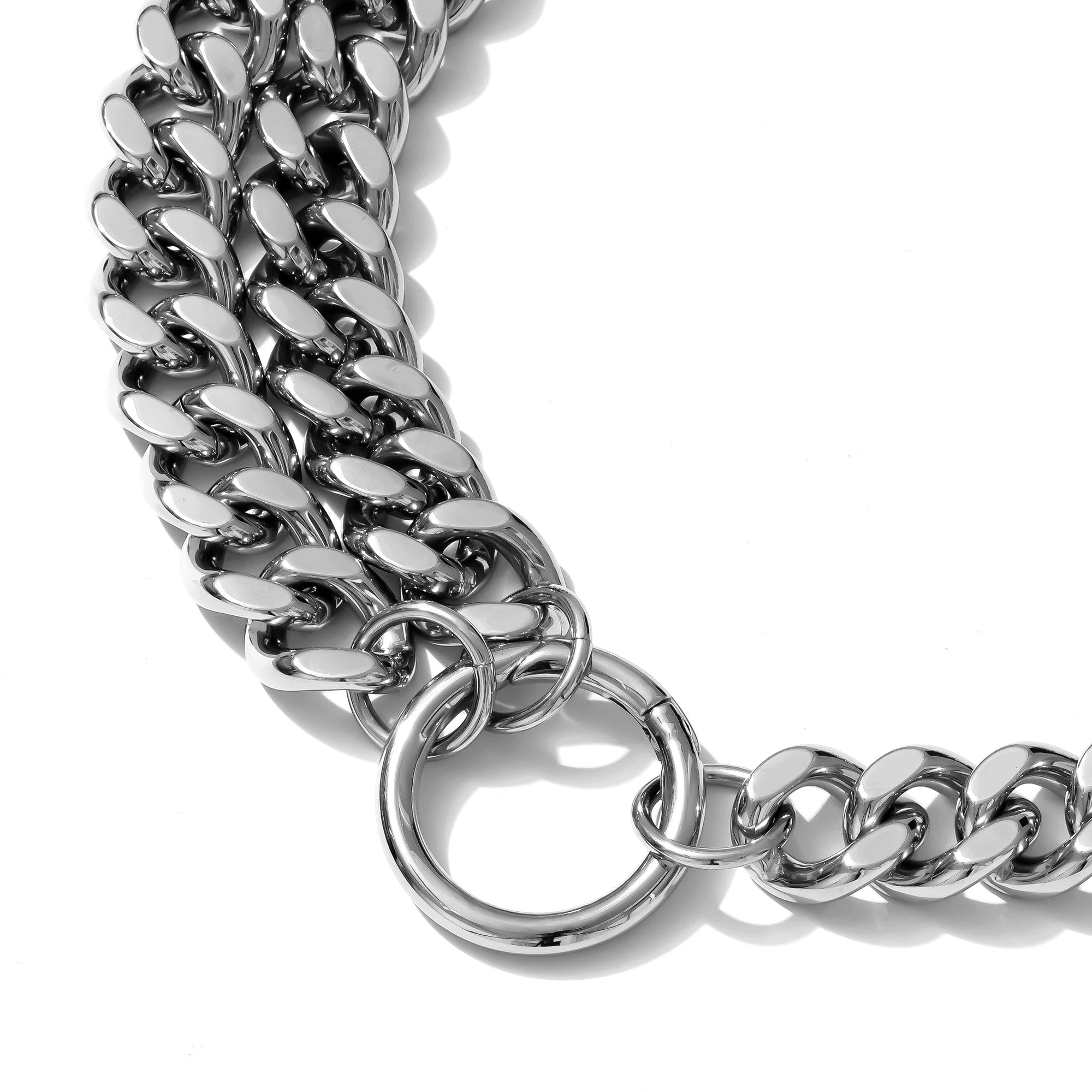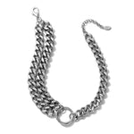 Commanding and fearless, this piece fuses two thick chains into one, joined by an off-center ring set with a diamond stud. More than just a detail, the ring opens for bold versatility and an invitation to play with control. Submission is a necklace of undeniable presence, crafted from sustainable stainless steel with an adjustable clasp for perfect fit. Not designed for anyone who prefers to go unnoticed.